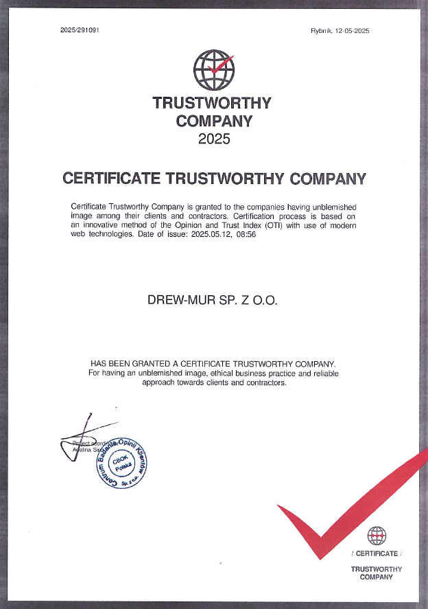 współpraca ze sprawdzonymi dostawcami materiałów. DrewMur zależy na tym, aby oferować najwyższą i najlepszą jakość usług: koncentracja